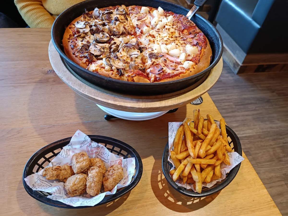 Great choice of pizzas in daily Pizza Hut Buffet menu. Tasty, warm and full of flavours. Fresh salads. Unfortunately drinks and ice cream tasteless. Not worth price. Lovely staff, helpful and attentive. Be prepared to use your phone as everything works on QR code. Biggest downside: size of cubicles in toilets- it's impossible to get in without hiding behind the pot. What if someone collapses inside the cabin? Health and safety concern