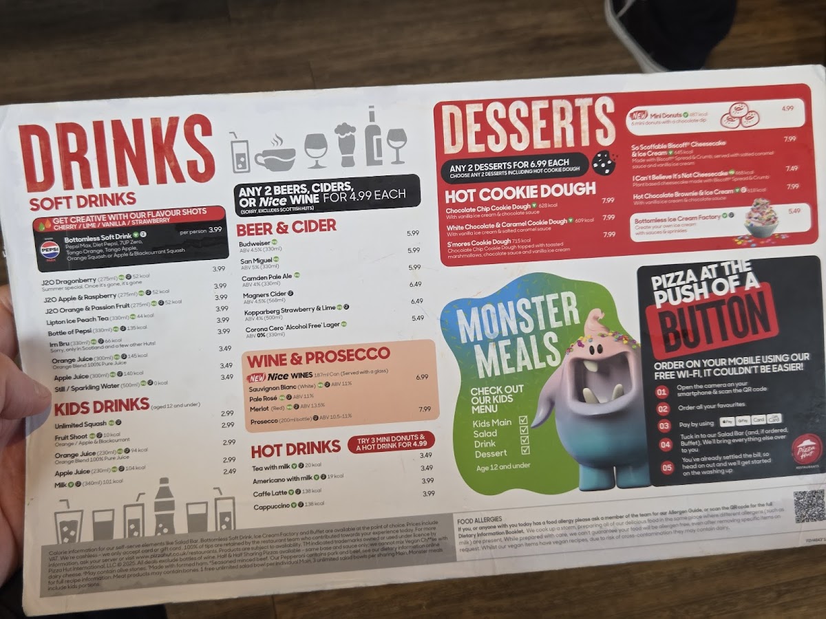 The dining experience is straightforward and friendly, with the menu’s simplicity encouraging a focus on enjoying familiar flavours in a casual environment. Whether visiting midweek or for a weekend family outing, the menu supports a comfortable and satisfying meal that complements the welcoming vibe of Pizza Hut at the Barbican Leisure Park.